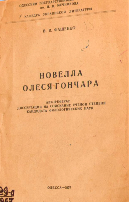 Василь ФАЩЕНКО – український літературознавець, літературний критик. Доктор філологічних наук, професор Одеського державного університету імені І. І. МЕЧНИКОВА, лауреат Державної премії УРСР імені Т. Г. ШЕВЧЕНКА. У 1954 році закінчив українське відділення філологічного факультету Одеського державного університету імені І. І. МЕЧНИКОВА та вступив до аспірантури при кафедрі української літератури. В 1958 році захистив дисертацію “Новели Олеся ГОНЧАРА” на здобуття наукового ступеня кандидата філологічних наук. Згодом присвоєно вчене звання доцента, здобуто ступінь доктора філологічних наук. Працював старшим викладачем, доцентом кафедри української літератури, згодом проректором. Цілеспрямований науковий пошук забезпечив йому місце серед найавторитетніших дослідників української новели. Основні результати багаторічних студій знайшли відбиття у його монографіях “Відкриття нового і діалектика почуттів” (1977), “У глибинах людського буття: етюди про психологізм літератури” (1981). Помер 26 червня 1999 року в Одесі. Похований на 2-му християнському кладовищі. З 2010 року в Одесі проводяться “Фащенківські читання”.