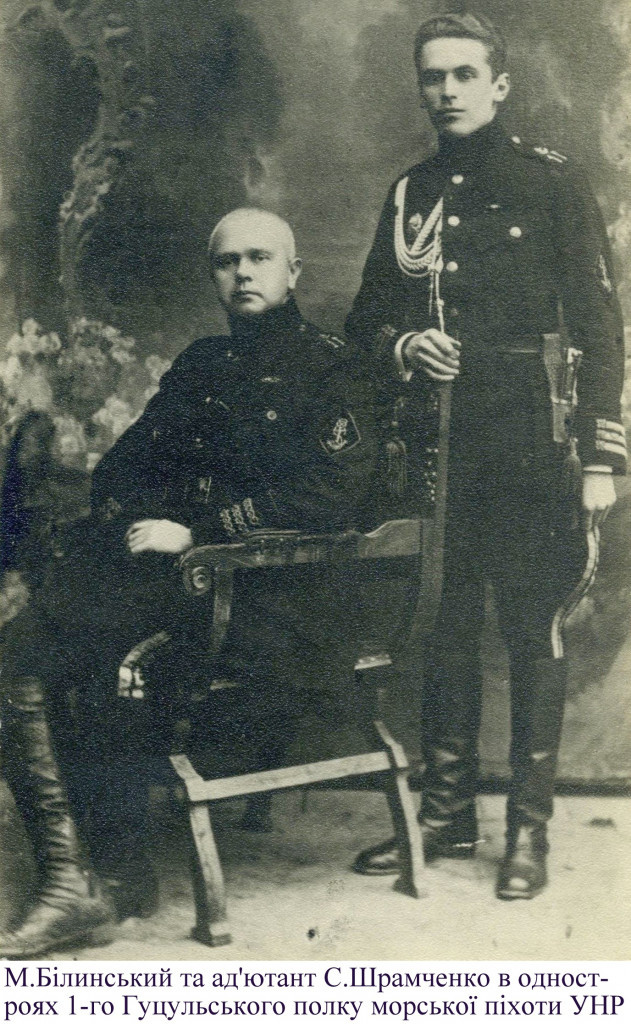Михайло БІЛИНСЬКИЙ – український військовий діяч, член центрального комітету Української партії соціалістів-самостійників, контр-адмірал Української Народної Республіки, Міністр морських справ Української Народної Республіки, міністр внутрішніх справ Української Народної Республіки, організатор та командир Дивізії Морської піхоти Директорії Української Народної Республіки. З початком революційних подій організовує Український військово-морський революційний штаб Балтійського флоту. Цей штаб організаційно об’єднав моряків-українців, які служили на Балтійському флоті, активно пропагував ідеї української автономії. Тоді на Балтійському флоті кількість моряків, які вважали себе українцями, становила понад 12 000 осіб. 12 жовтня 1917 року на кораблях зі створеними т.з. “українськими залогами” було піднято український синьо-жовтий прапор. Один з організаторів Українського генерального секретарства морських справ Української Народної Республіки.