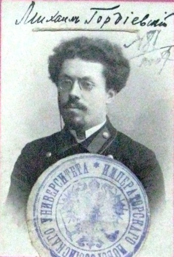 Михайло ГОРДІЄВСЬКИЙ – філософ та історик. Член ТУП, УПСР. Закінчив Новоросійський університет (Одеса, 1910). Працював у ньому, як доцент (від 1915), професор (від 1918); в Одеському педагогічному. інституті. Брав участь у діяльності одеського товариства “Просвіта” (1905 – 1909). У 1917- 19 виступив в одес. Періодиці зі статтями “Україна яко держава”, “Російський централізм”, “Українські установчі збори”, “Парламент і конгрес”. Голова Одеського наукового при УАН товариства (1926-1930). Репресований комуністичною окупаційною владою у 1938 році та розстріляний. Реабілітований у 1992 році.